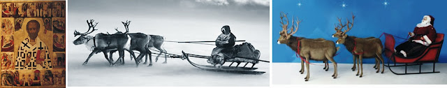 Further back in history, as far back as 45,000 years, we find another root for Santa Claus: a Paleolithic Siberian reindeer herder. Duncan-Enzmann tells of this character in Ice Age Language. The reindeer herder traded in reindeer hides, which are both warm and waterproof.